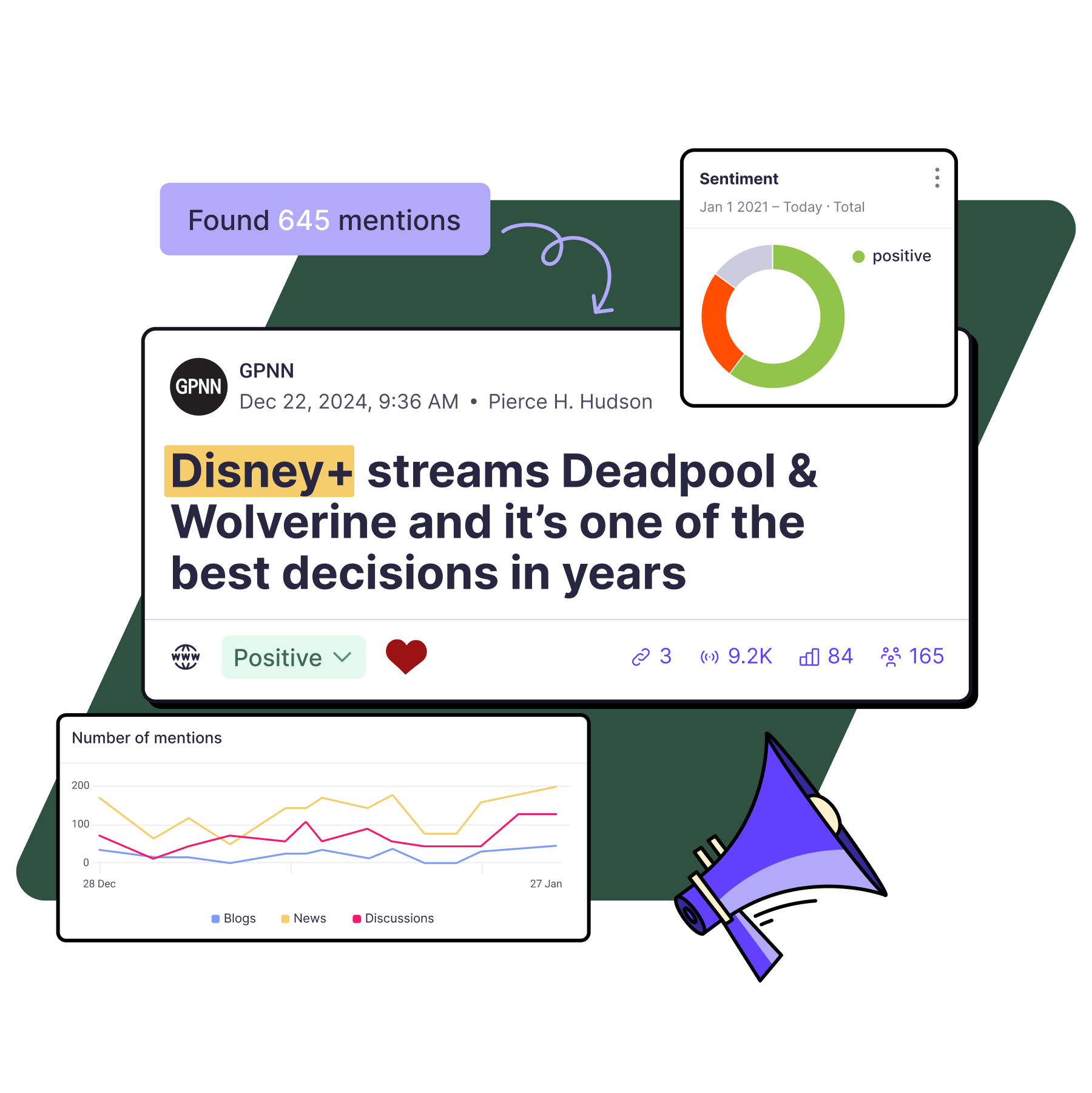 Spot trends and mentions fast. Advanced filters, real-time alerts, and automated dashboards will help you track your online spaces and nip any crisis in the bud.