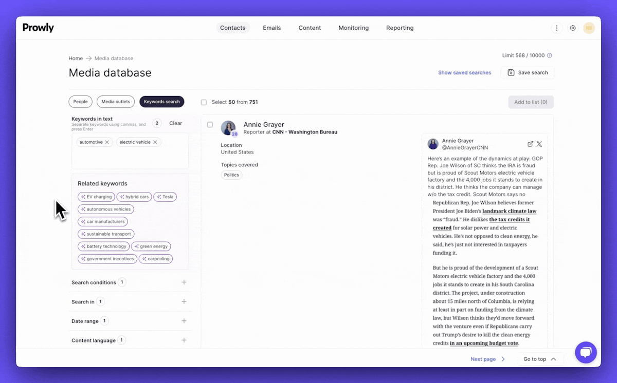 Don’t overpay for spammy coverage tracking. Instead, try Prowly’s hyper-focused media monitoring with independent query building & editing.