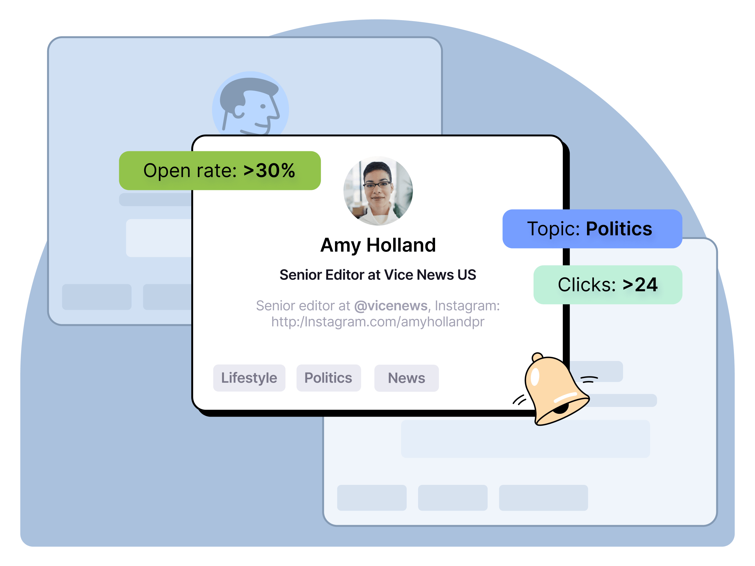 Browse over a million media contacts in Prowly’s Media Database to find relevant journalists and media outlets for your clients. Then, send personalized emails to your new contacts and start building long-lasting media relationships. All from one place.