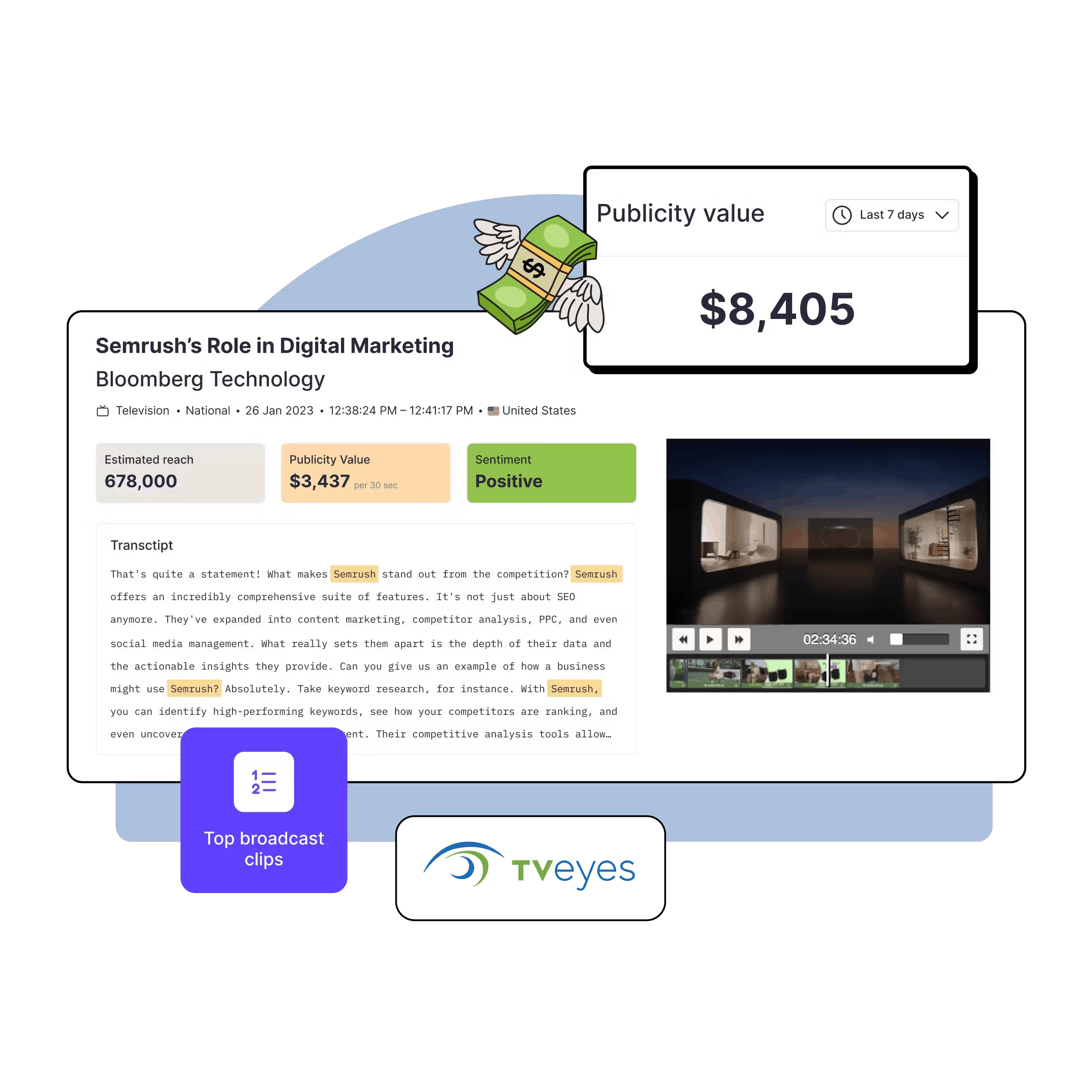 Use just one flexible toolset for all your PR tasks, including offline monitoring: print (LexisNexis) and broadcast (TVEyes).