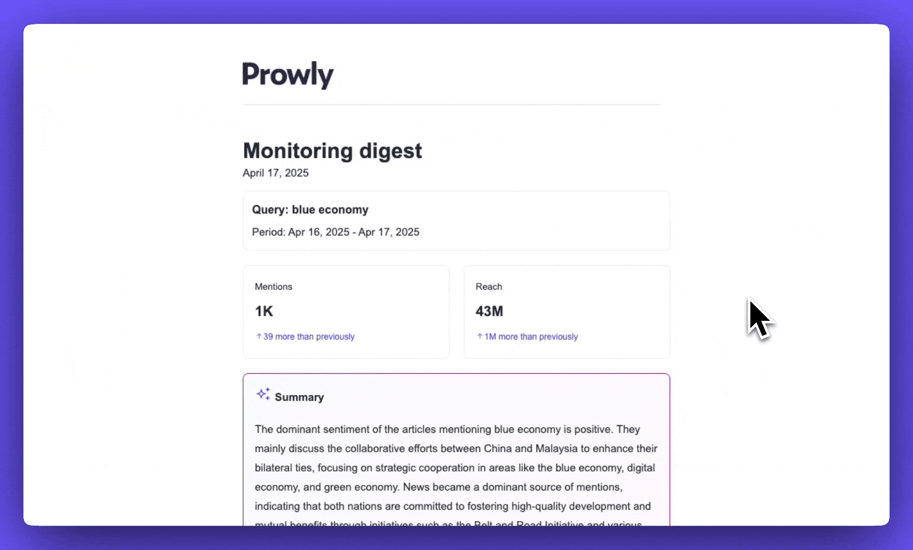 PR tools don’t need a steep learning curve to deliver strategic insights. Monitor offline and online media in one place with Prowly—so you can stop tool-hopping and start strategizing.