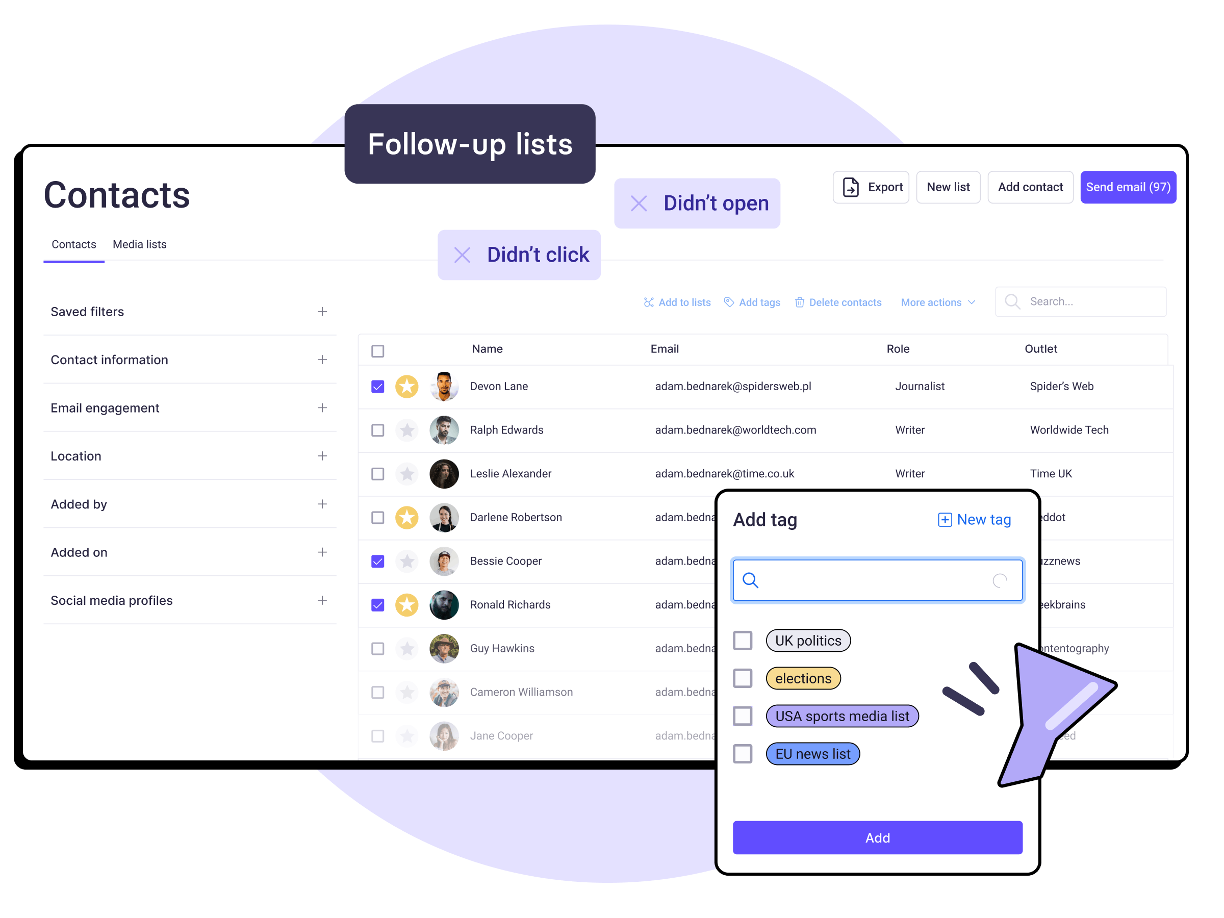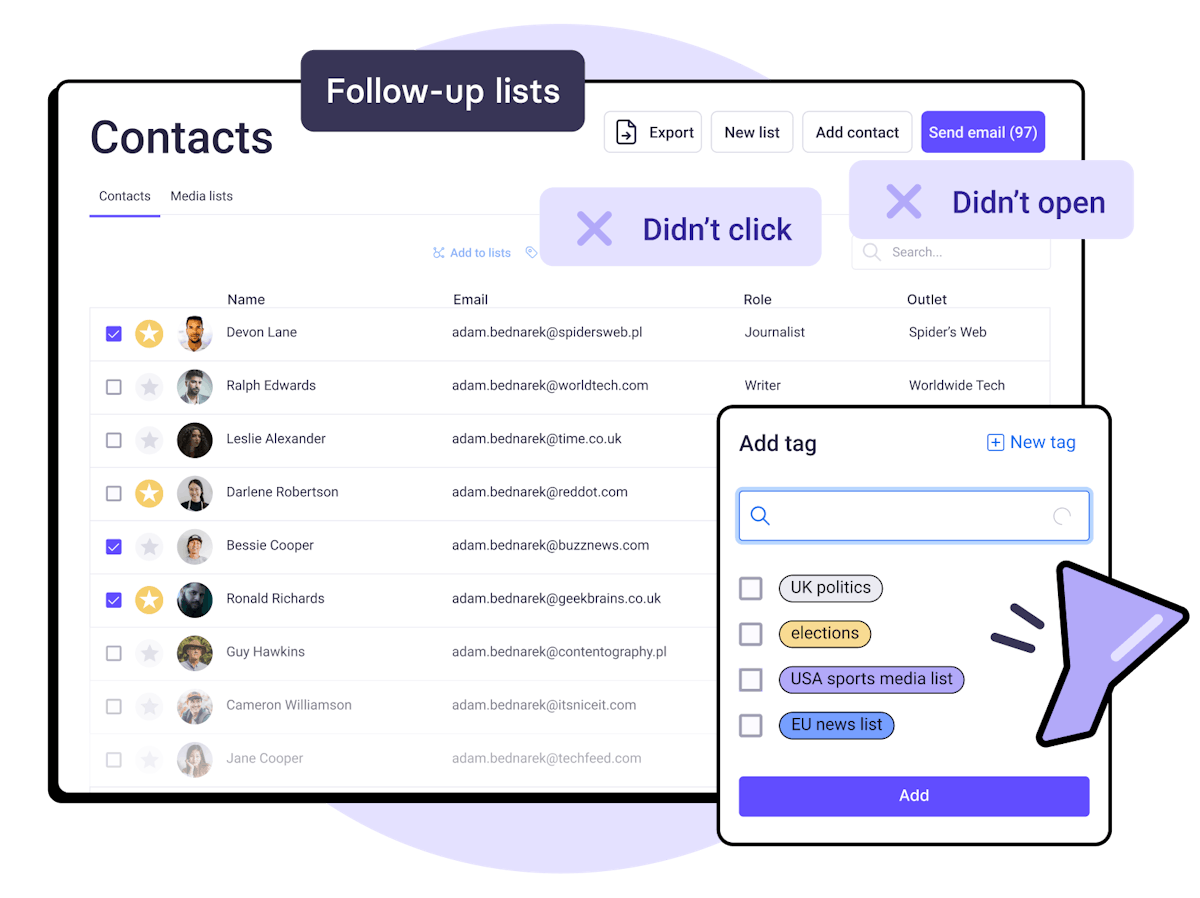 Get publicity for your business with an easy-to-use tool with a media database of over 1,000,000 contacts and pitch journalists right from the app.
